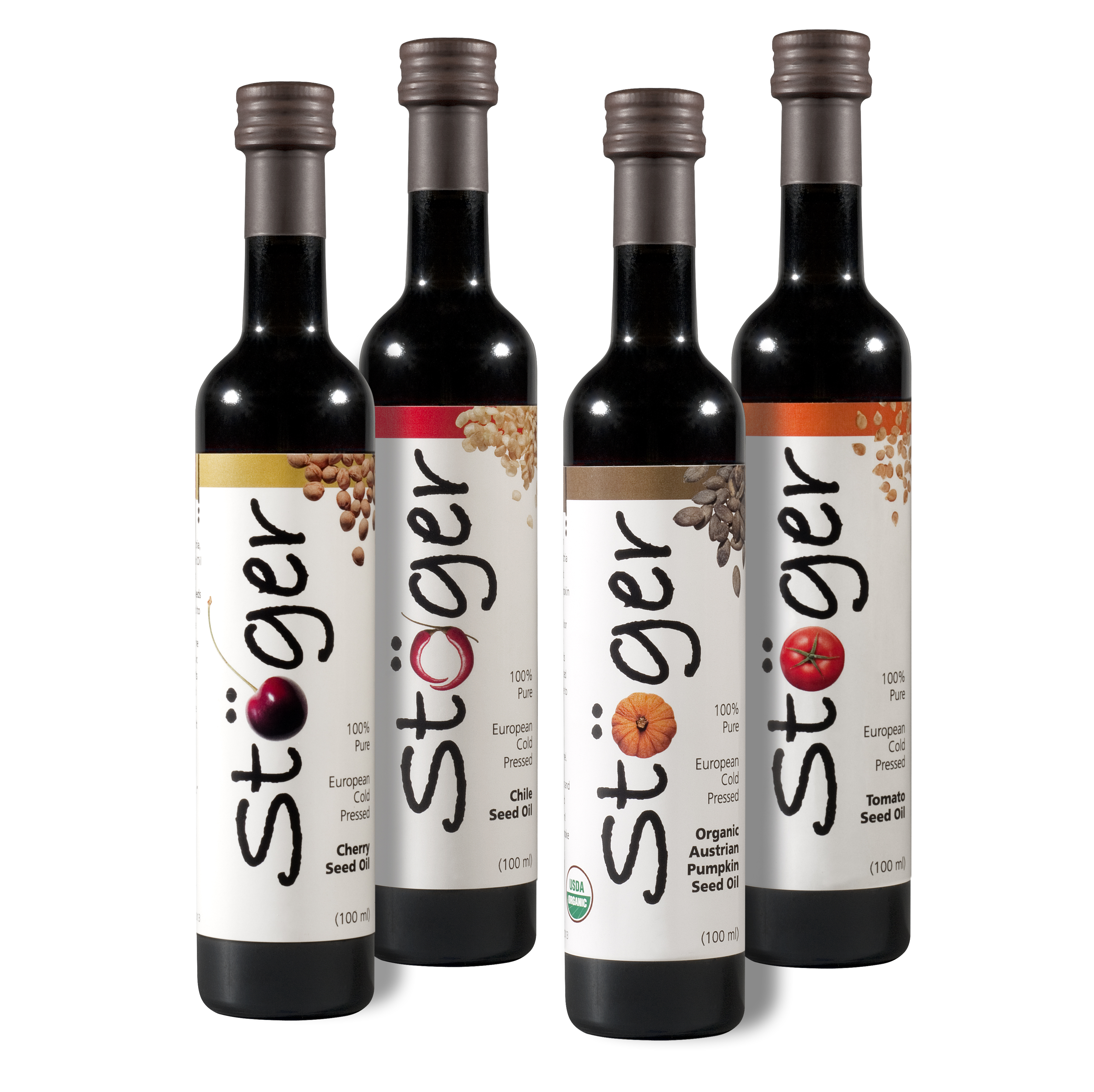 We heard about Stöger Oils awhile back and were intrigued. They’re made in Austria on a family farm. They basically take seeds – pumpkin, chile, cherry and tomato – and create pure oils from them. One taste and we were hooked and we knew that we had to bring them to the States. Plus we loved the idea of lots and lots of tiny elves dressed up in lederhosen making these oils.