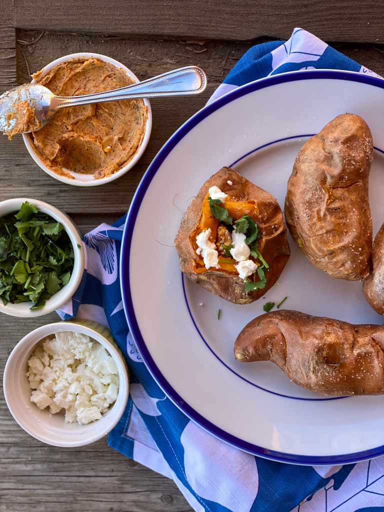 Roasted Sweet Potatoes with a Green Tahini Sauce