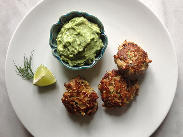 While the burgers are cooking, make the Creamy avocado. In a small bowl, mash the avocado until fairly smooth. Stir in the dill and sour cream and a good squeeze or two of lime juice. Taste and adjust the seasoning. Serve on top of or along side the burgers.