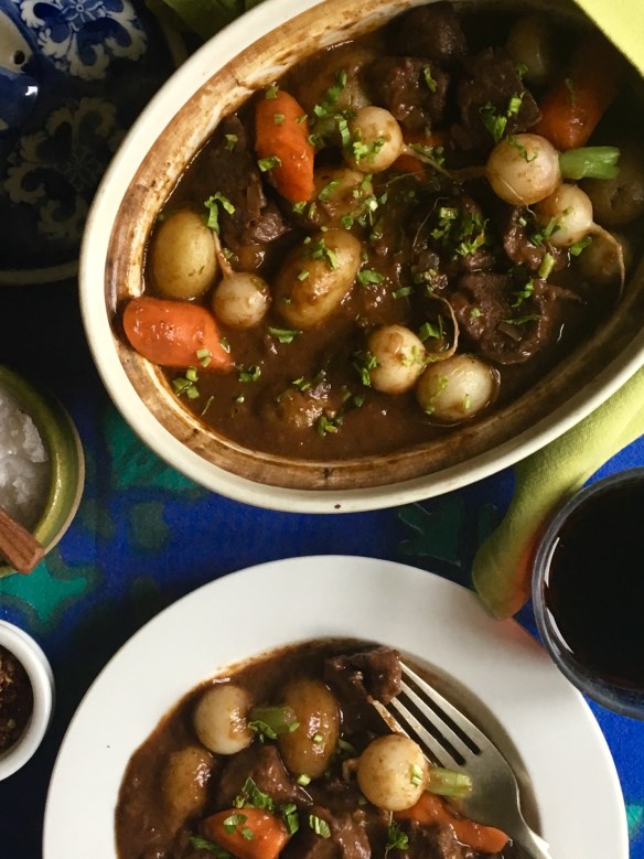 Winter vegetables? Potatoes, carrots and turnips – baby ones if you can find them – are a natural but you could use parsnips, hard squashes or leeks too. This makes a big enough batch for a spot of pre-holiday entertaining or you can freeze the leftovers to tide you over during the long nights ahead.