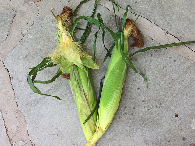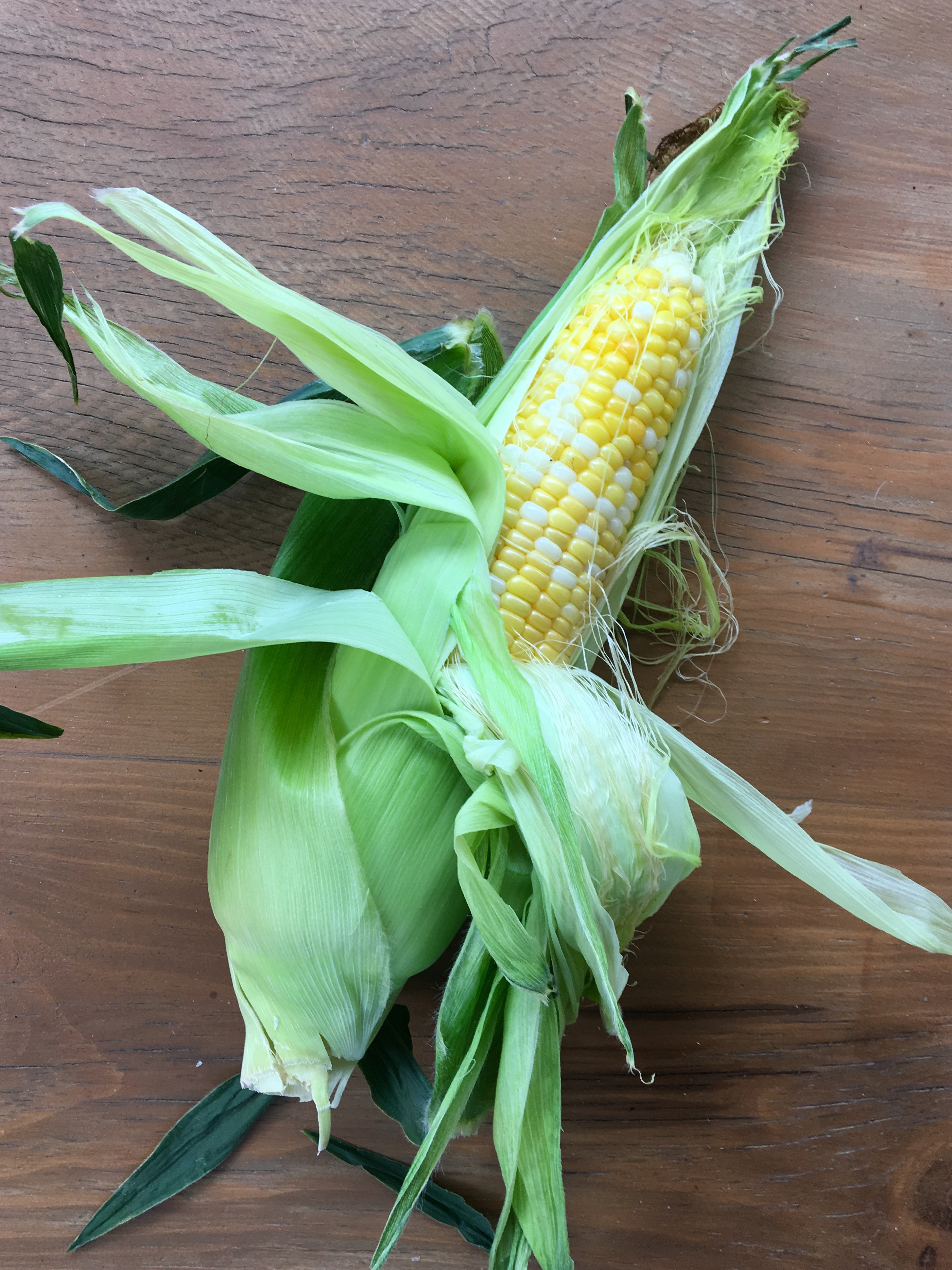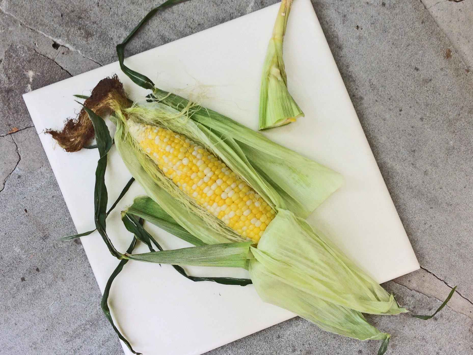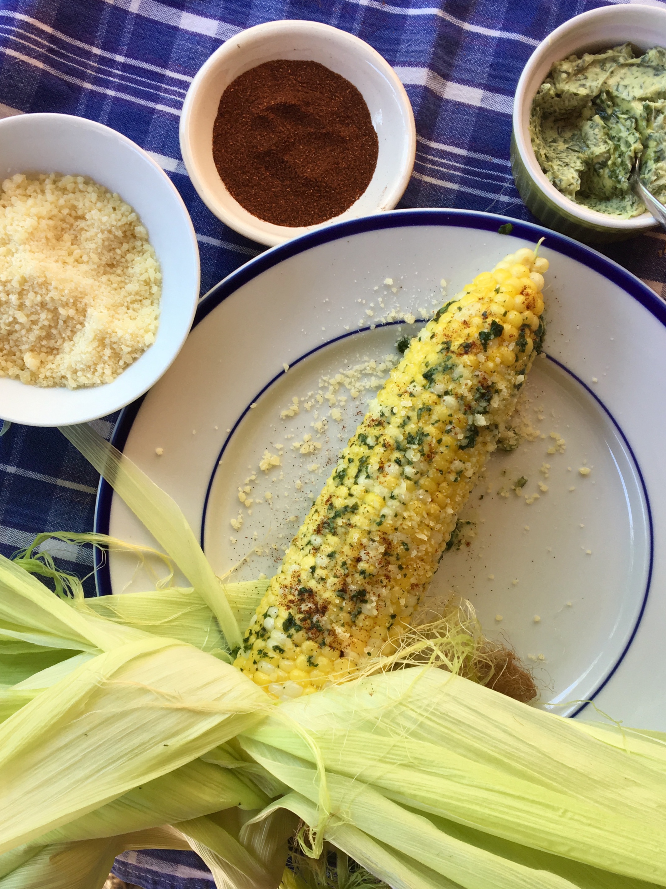 Corn on the cob with basil butter, parmesan cheese and chipotle chile
